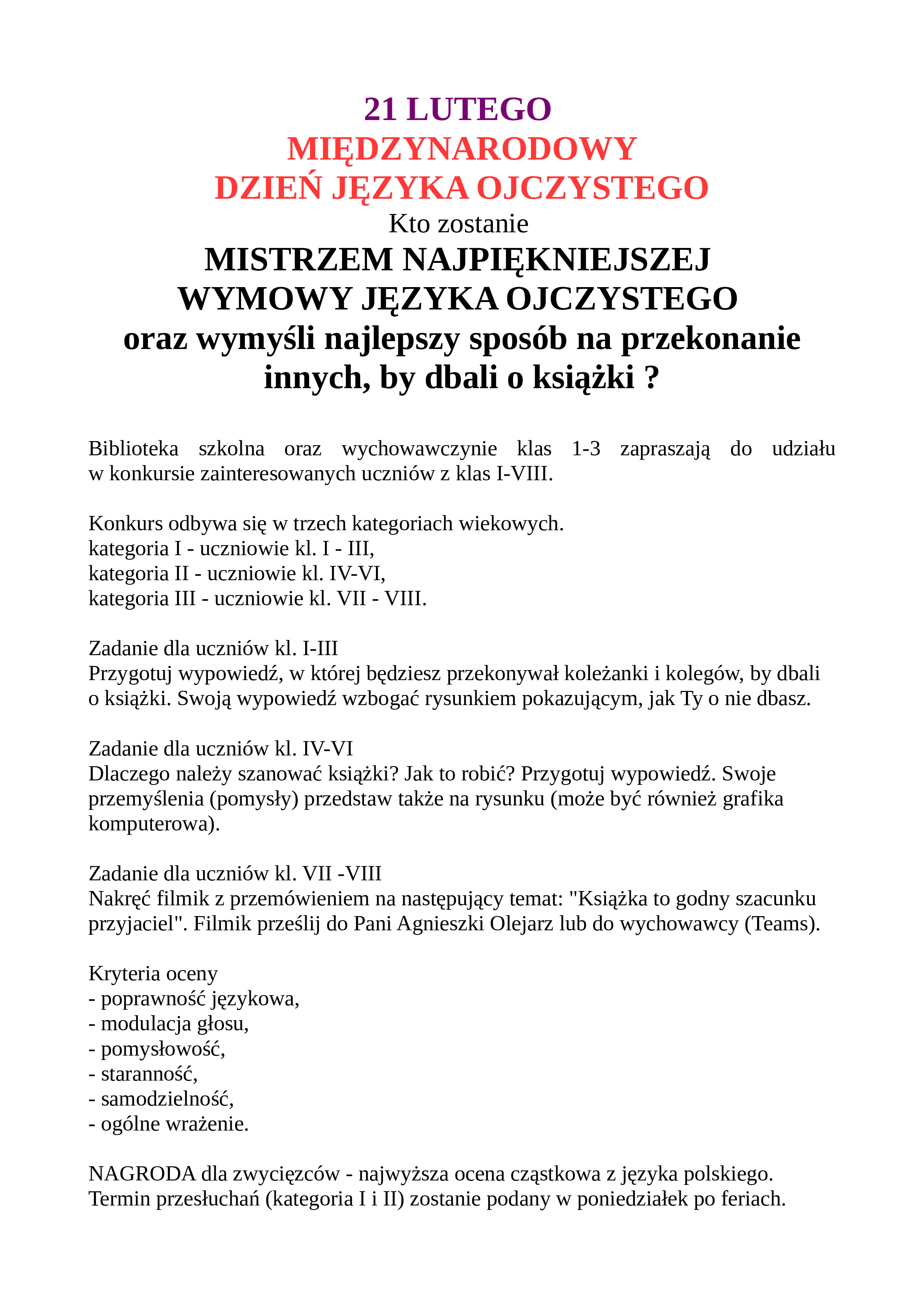 Z okazji Dnia Języka Ojczystego odbył się szkolny konkurs