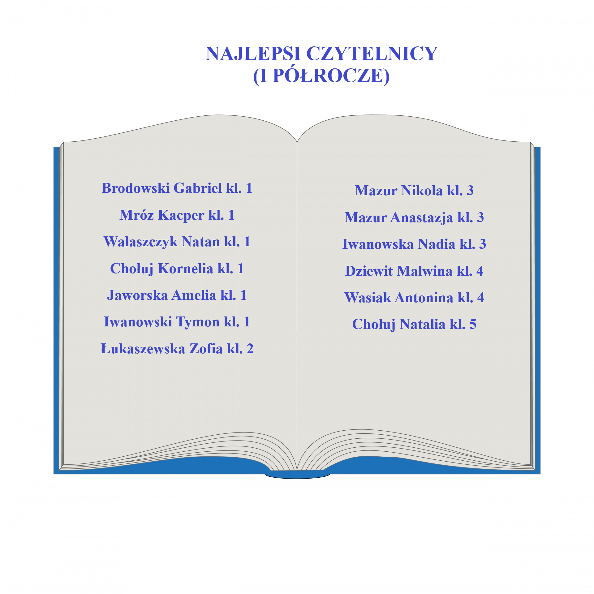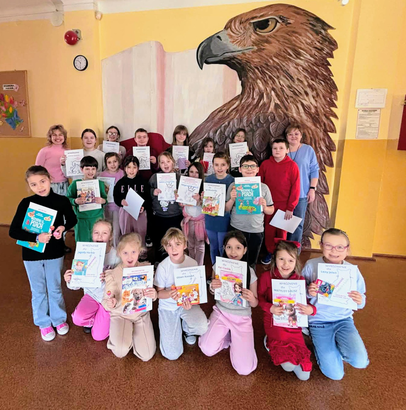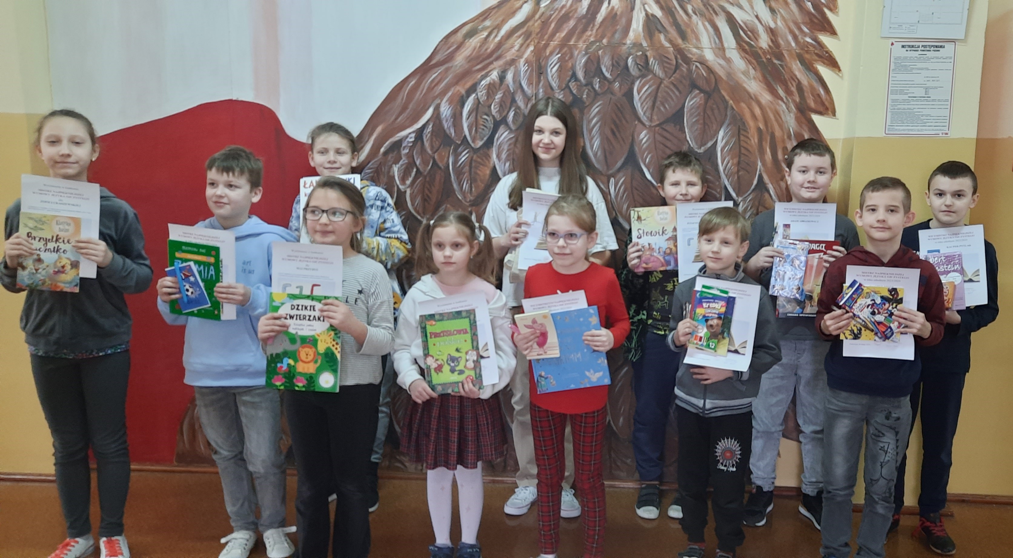 Matylda Golisz (kl. I), Lena Jeleń (kl. I), Kaja Cieślik (kl. I), Oliwia Rzeszut (kl. I), Jagoda Hernik (kl. I), Lena Misalska (kl. II), Iga Misalska (kl. II), Oliwia Dziak (kl. II), Tomasz Bąk (kl. II), Mert Wróbel (kl. II), Iwo Smal (kl. IV), Zofia Jurek (kl. V), Hanna Dziekan (kl. V), Nadia Iwanowska (kl. VI), Natan Smal (kl. VI).