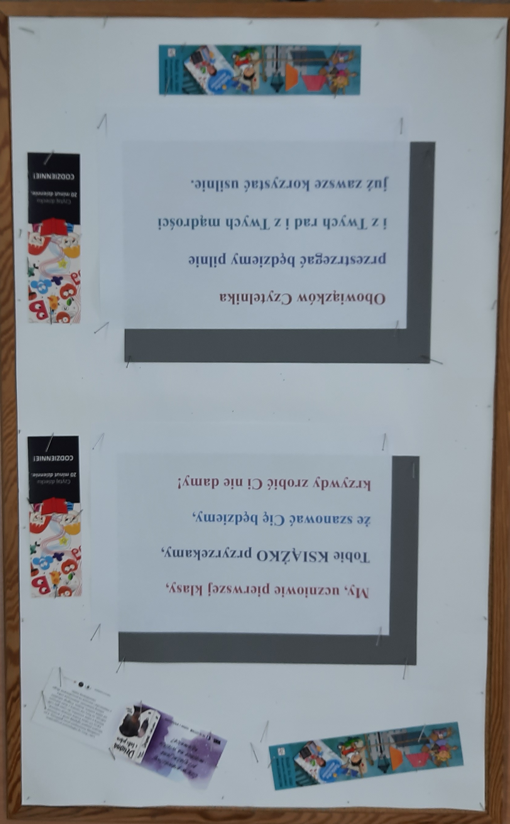 Na czym polegało wakacyjne wyzwanie? Przypomnienie znajduje się na tablicy obok biblioteki.