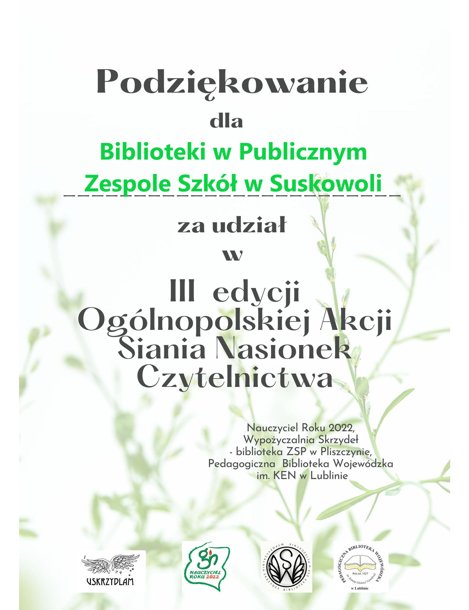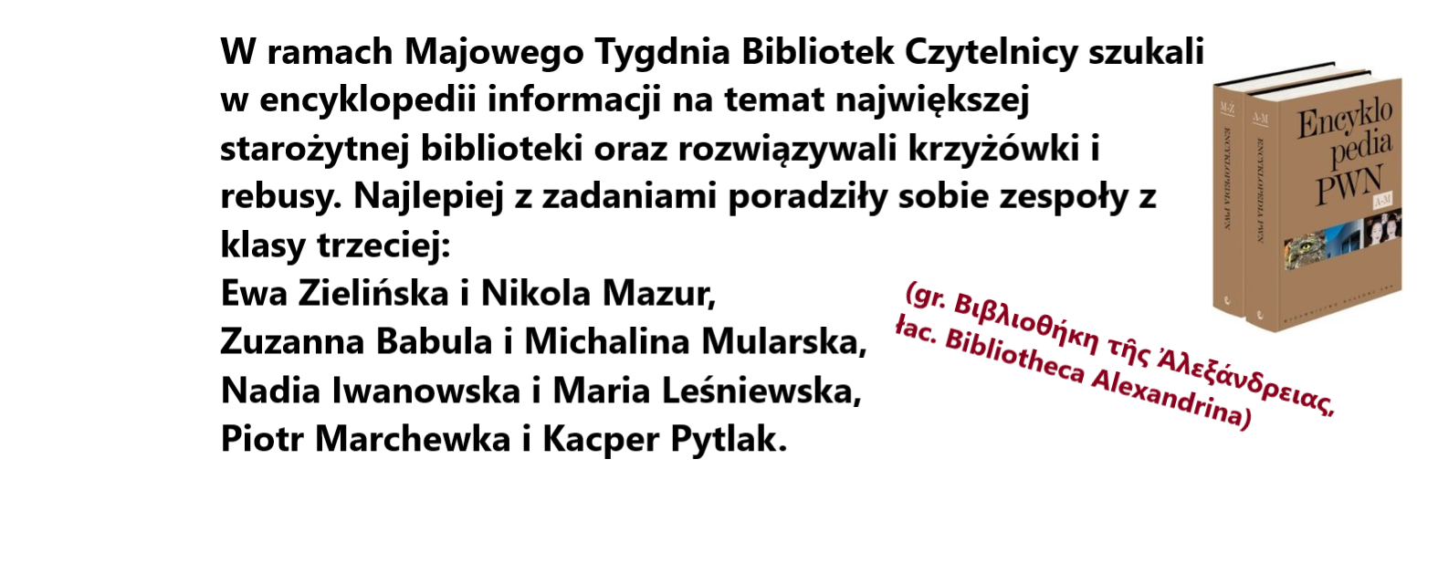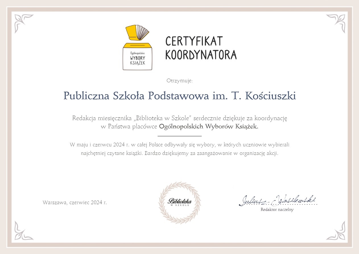 Dziękujemy wychowawcom, którzy wspierali bibliotekarki w przeprowadzeniu konkursu.