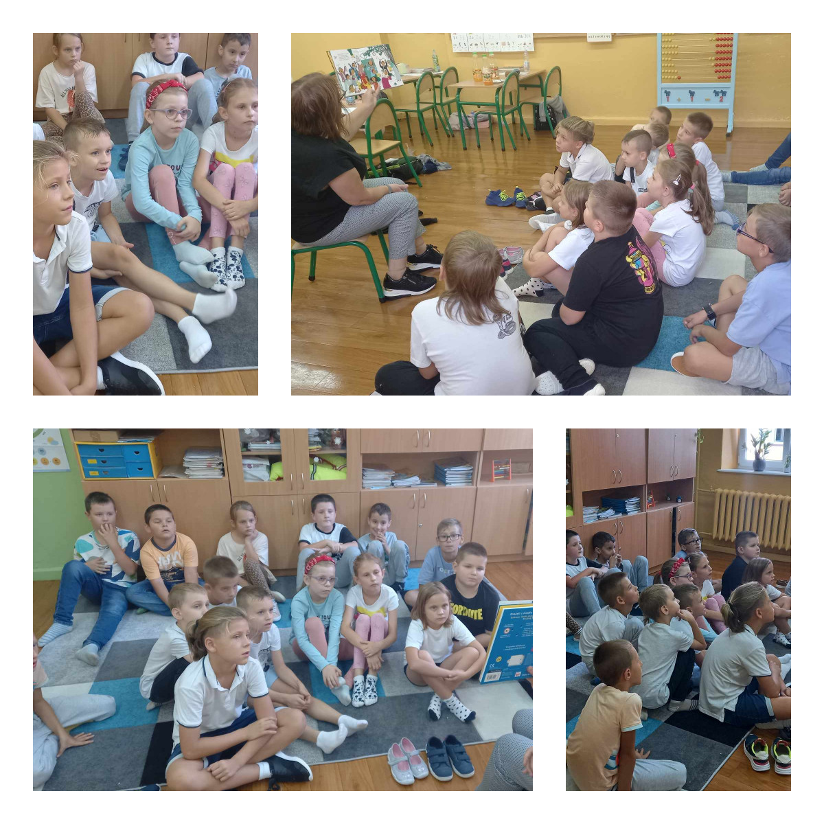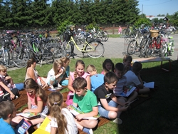 Klasa 4 i 5, zeróweczka Pani Doroty oraz dzieci uczęszczające na zajęcia do Pani Agnieszki znalazły czas na #czytanienapolanie i włączyły się do akcji.