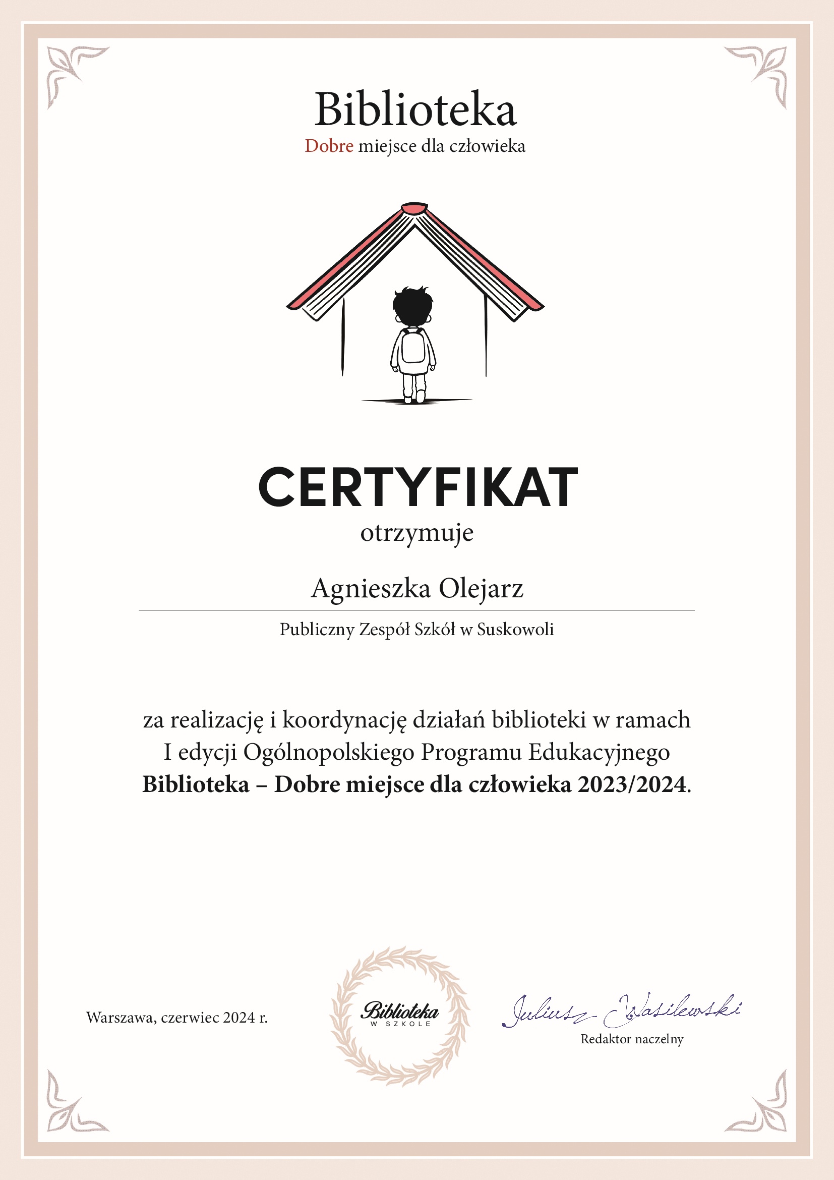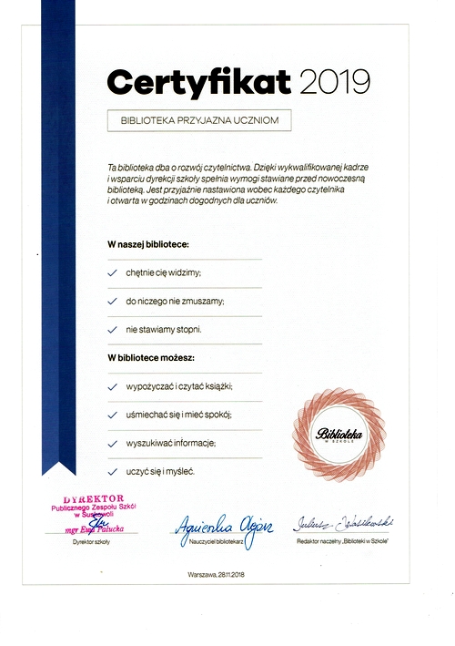 W naszej szkole do akcji włączyły się 3 osoby (kl. V, VIII). Uczniowie zachęcali do przeczytania książek w bezpośredniej rozmowie oraz pisali rekomendacje. Jedna z nich - w formie listu - dotarła nawet do dzieci z naszego przedszkola, które w związku z tym odwiedziły bibliotekę (https://www.suskowola.pl/przedszkole/aktualnosci/aktualnosci.html). Inna - zachęciła do eksperymentowania, następna - do rozmowy o tym, w jaki sposób uratować trudny dzień, a jeszcze inna - do rozważań o tym, co nas śmieszy.