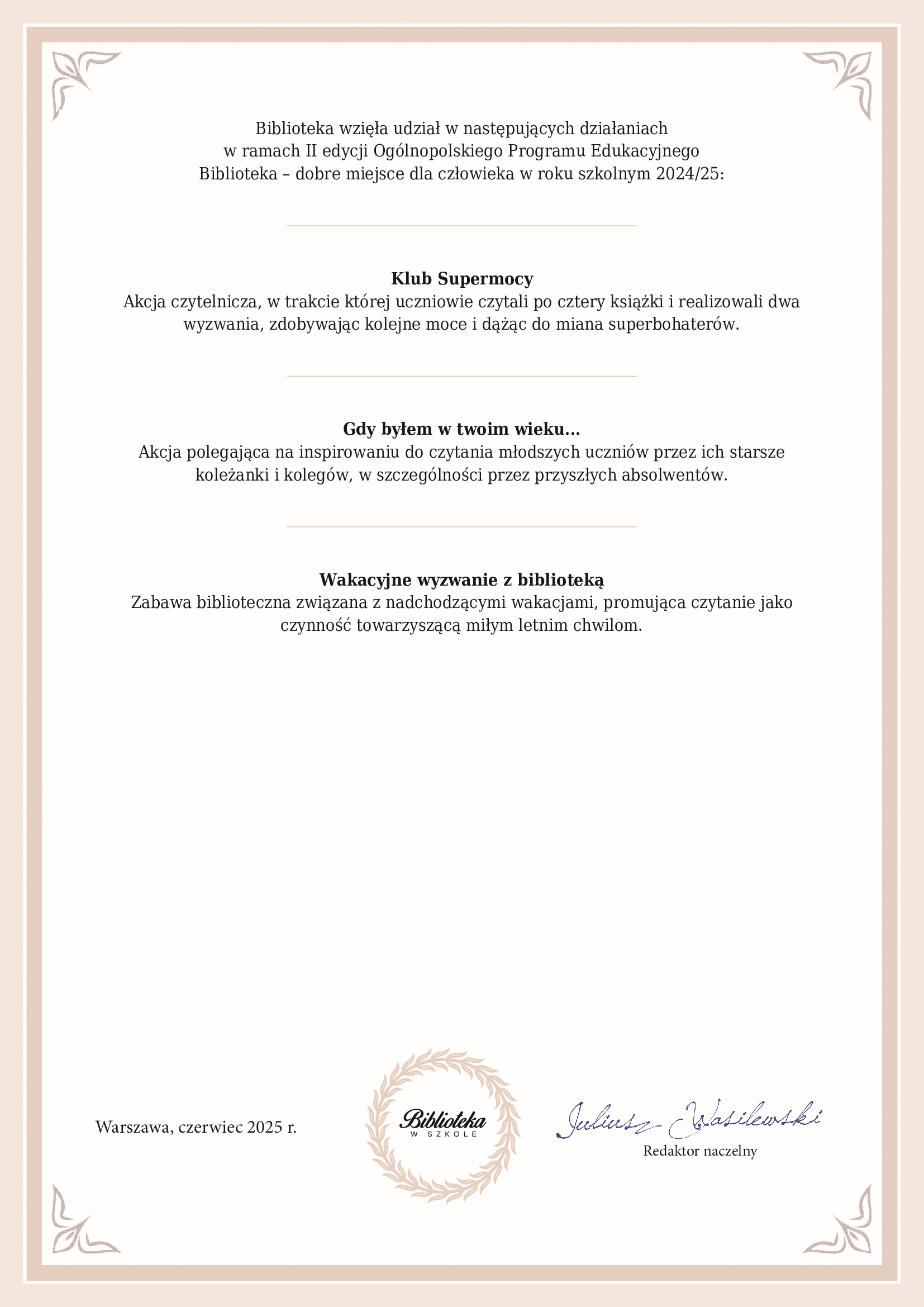 w roku szkolnym 2024/2025