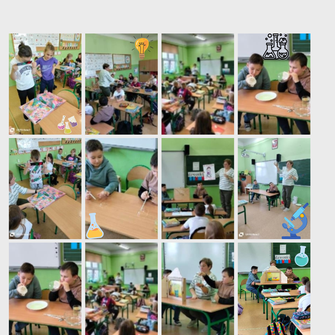 Eksperymenty zaczerpnięte z książek znajdujących się w naszej bibliotece zagościły na zajęciach w klasie I. Kawałek świata nauki postanowili pokazać swoim kolegom Antek i Bartek.