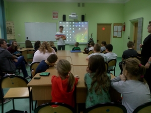 Podczas spotkania p. Agnieszka Olejarz opowiedziała uczniom, na czym polega praca w bibliotece szkolnej, gdyż niektórzy myślą, że sprowadza się ona tylko do wypożyczania książek.