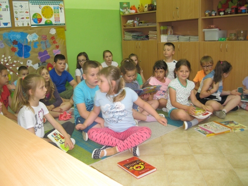 Dziewczęta i chłopcy poradzili sobie z tremą przed publicznym występem i ciekawie przedstawili przeczytane przez siebie książki.