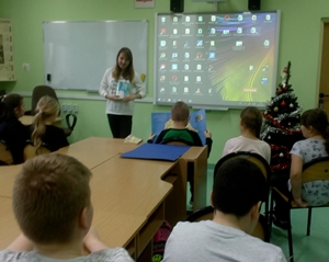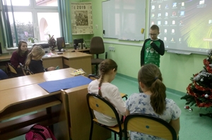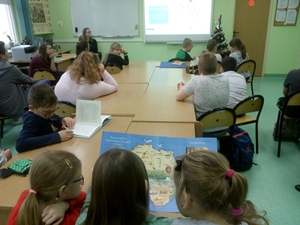 Dziewiątego stycznia uczniowie klasy IIIc zebrali się w szkolnej bibliotece, by pokazał%
