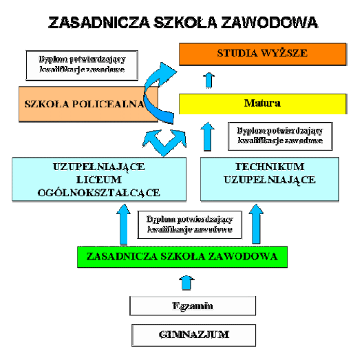 Zasadniczą szkołę zawodową o okresie nauczania od dwóch do trzech lat, powinni wybierać ci absolwenci gimnazjów, którzy chcą się szybko usamodzielnić i rozpocząć pracę zawodową. Po zdanym egzaminie zewnętrznym mogą uzyskać dyplom potwierdzający ich kwalifikacje zawodowe .