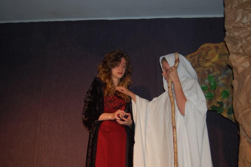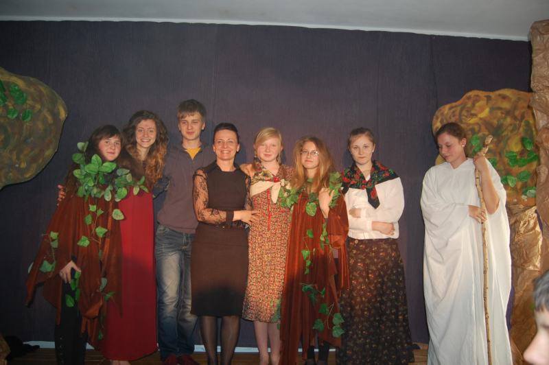 Spektakl obejrzało ponad 200 osób. Zachwycała gra aktorska oraz kostiumy i muzyka. Całość tworzyła niepowtarzalny nastrój. Na szczególne wyróżnienie zasługuje Klaudia Janas uczennica klasy III c, która brawurowoodegrała role Balladyny oraz Basia Bzdzikot ucz. kl. IIb w roli jej siostry Aliny. Świetnie spisały sie początkujące na scenie uczennica klas pierwszych: Dominika Jarosz - Pustelnica, Blanka Kuchta - Wdowa, Wiktoria Bednarczuk i Wiktoria Krawczyk - Drzewa. Opiekun Teatru składa również podziękowania Mikołajowi Cybulskiemu- uczniowi klasy IIIc, który wystąpił w roli Kirkora, za zaangażowanie i pomoc w stworzeniu oprawy muzycznaj widowiska. |