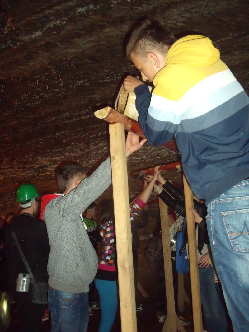 Następnie łodziami pływali po solnym podziemnym jeziorze.
