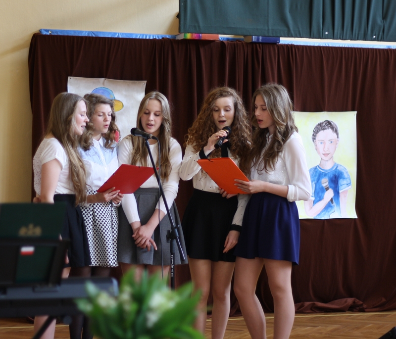 Dziewczęta z gimnazjum: Klaudia Kołodziej (IIIa), Agata Mazur (IId), Monika Rydz (IId), Edyta Furga (IId) i Julia Duda (IId) wyśpiewały otwarcie festiwalu utworem z repertuaru M. Grechuty pt. "Żył raz królewicz".