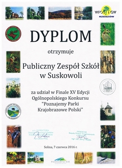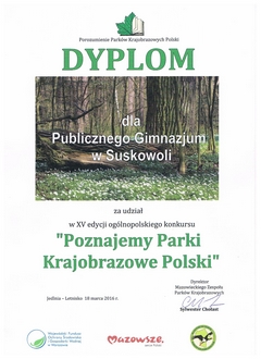 16.01.2016r. w Centrum Aktywności Lokalnej w Pionkach odbył się III etap konkursu o parkach krajobrazowych Polski. Z terenu Kozienickiego Parku Krajobrazowego do konkursu przystąpiło pięć drużyn reprezentujących następujące szkoły: PG w Jedlni - Letnisko, PG nr 1 w Kozienicach, PG w Garbatce-Letnisko, PG w Suskowoli, PG w Brzózie. Najlepszą drużyną etapu parkowego jak i w roku ubiegłym okazała się drużyna z PG w Suskowoli w składzie: