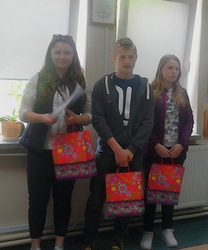 W dniu 20 czerwca w CAL w Pionkach uczennica klasy 1B gimnazjum Alicja Baran odebrała dyplom i nagrodę za zajęcie III miejsca w konkursie plastycznym "Eko-roślina" w kategorii uczniowie szkół gimnazjalnych. Konkurencja była ogromna, na wystawie w Centrum Aktywności Lokalnej możemy obejrzeć bardzo ciekawe prace uczniów naszej szkoły jak i szkól z najbliższej okolicy. Gratulujemy pomysłowości