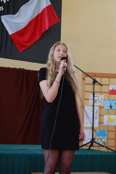Uczniowie zaśpiewali "Psalm stojących w kolejce" z repertuaru K. Prońko, "Solidarność" – M. Grechuty, "Czterdziesty czwarty" – L. Makowieckiego, "Mury" – J. Kaczmarskiego, "Pieśń powstańców 1863 r.". Koncert zakończył się występem Pani I.Tabor, która zaśpiewała utwór z repertuaru E. Geppert pt. "Nie żałuję". Akademię przygotowali wspólnie uczniowie szkoły podstawowej i gimnazjum. Dziękujemy za tę oryginalną lekcję historii wszystkim uczestniczącym w akademii uczniom i czuwającym nad całością przedsięwzięcia nauczycielom: p. M. Gębczyk, p. S. Osińskiej (soliści i chór), p. M. Sameli-Grabiec (przygotowanie recytatorów ze szkoły podstawowej), p. D. Jasiuk i p. B. Ociesie (najmłodsi soliści), p. K. Bujnowskiej (wzbogacenie oprawy plastycznej) oraz paniom J. Górskiej i A. Olejarz, które wymyśliły i opracowały przebieg uroczystości, a także p. W. Cybulskiemu, który wspólnie z uczniem kl. IIb K. Glimasińskim zadbał o sprawne działanie sprzętu nagłaśniającego.