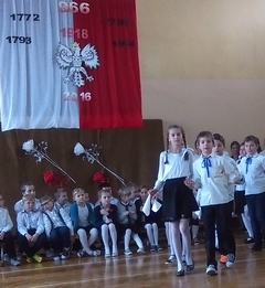 | 10 listopada odbyła się w naszej szkole uroczysta akademia z okazji Narodowego Święta Niepodległości. Program słowno-muzyczny pt. „Jeszcze jeden listopad” przygotowali wspólnie uczniowie szkoły podstawowej i gimnazjum. Podczas występu chór oraz soliści pod kierunkiem Pani Marioli Gębczyk zaprezentowali nam patriotyczne piosenki i pieśni, m.in. „Przysięgę” i "Niebieskooką". Oczywiście zagrał też M. Kazberuk. Uczniowie klasy II PSP, wspierani przez Panią M. Niemirską, brawurowo zaśpiewali „Przybyli ułani pod okienko”, a uczniowie kl. III PSP odtańczyli uroczyście poloneza. Przygotowali go wspólnie z Panią D.Jasiuk i Panią M. Samelą-Grabiec. Mali i duzi uczniowie recytowali utwory poetyckie oraz przypominali społeczności szkolnej o wydarzeniach historycznych. Nad całością czuwały Panie J. Górska i A. Olejarz. Pan W. Cybulski zadbał o sprawne działanie sprzętu muzycznego. |