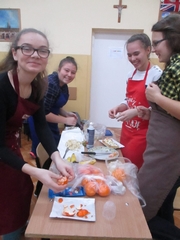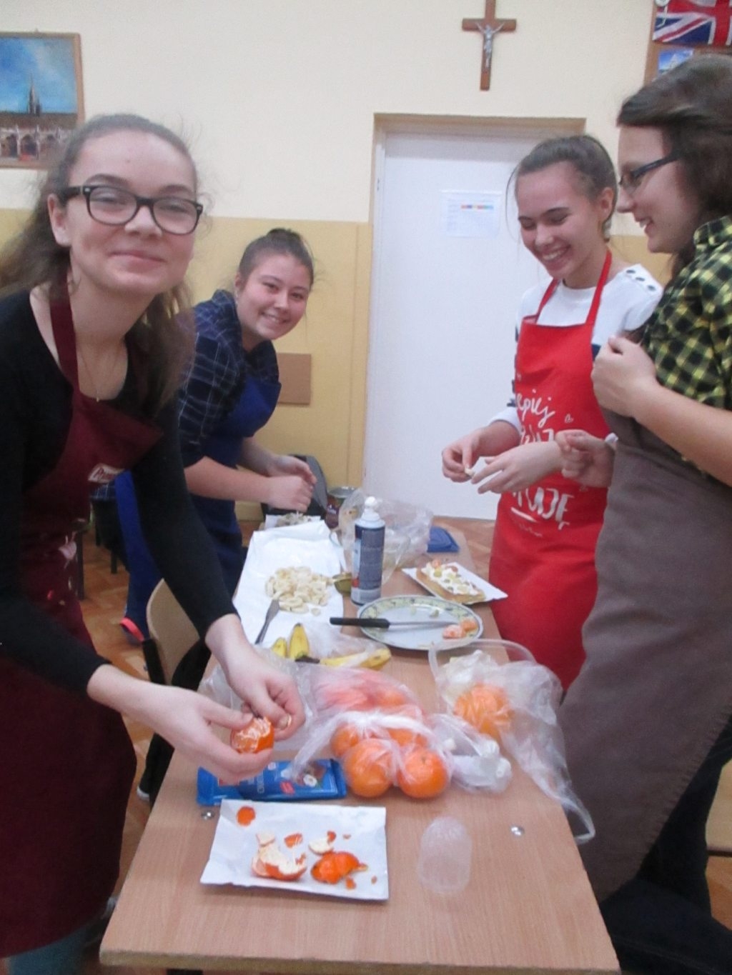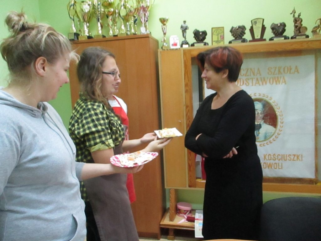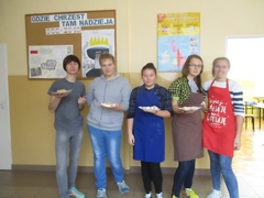 W naszej szkole już daje się poczuć mikołajkową i świąteczną atmosferę. Poza wspaniałymi dekoracjami nad frontowymi drzwiami w szkole pojawiły się "kucharze" z klasy 3b serwujący gofry własnego pomysłu. Podczas zajęć techniki uczniowie klas trzecich podjęli się samodzielnie sporządzić owocowe gofry, a surowymi jurorami zostali nauczyciele z panią dyrektor na czele. Ku uciesze klasy 3b stworzone przez nich "kulinarne dzieła" smakowały wszystkim. Ostatni dzień listopada w szkole w Suskowoli przypominał kulinarne potyczki kucharzy, wygrali wszyscy - gotujący i smakujący. Czekamy na "dokładkę" na Mikołajki