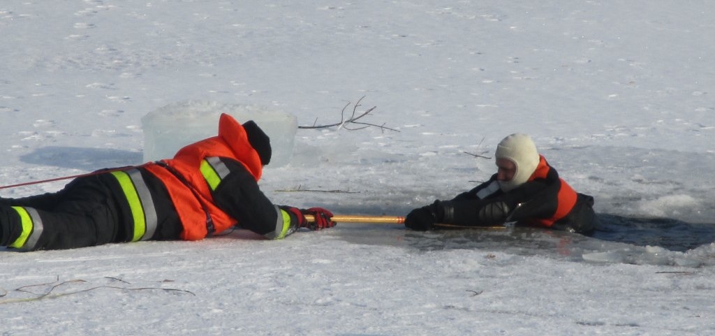 Pokaz obejmował szereg akcji ratowniczych, podczas których pozorant znalazł się pod lodem. Do akcji przystąpiło kilku ratowników, którzy bardzo sprawnie wyciągnęli go z wody, a następnie przeprowadzili czynności ratujące życie i bezpiecznie przetransportowali do brzegu.