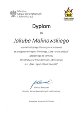 Jakub Malinowski z kl. IIIc wziął udział w Ogólnopolskim Konkursie Literackim "Rotmistrz Pilecki Bohater Niezwycieżony". Honorowy patronat nad tym konkursem objął prezydent Rzeczypospolitej Polskiej Andrzej Duda. Cieszy nas fakt, ze Jakub podjął sie niełatwego zadania. Życzymy Jakubowi osiagnięcia jak najlepszego wyniku, choć już sam udział w konkursie uważamy za sukces.