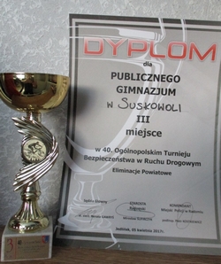 30 maja 2017r. drużyna chłopców z gimnazjum w Suskowoli wzięła udział w Grze terenowej z okazji 80-lecia Centralnego Ośrodka Przemysłowego w Pionkach. Naszą szkołę reprezentowali: Kacper Glimasinski, Michał Szcześniak i Jakub Gregorczyk wszyscy z klasy III b. Panowie świetnie się spisali kończąc zmagania na pierwszym miejscu. Otrzymali nagrody z rąk organizatora Pana Rafała Kąckiego nauczyciela historii w Liceum Ogólnokształcącym im. Marii Dąbrowskiej w Pionkach. Serdecznie gratulujemy chłopakom.