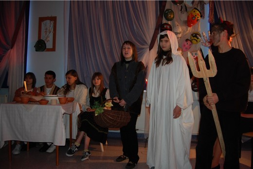 -autoprezentacja - przygotowanie i prezentacja inscenizacji "Dziady" cz. II oraz jasełek "Jak to z narodzeniem Jezusa było"