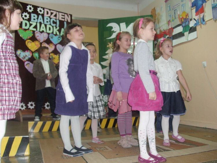 Przedszkolaki z naszej szkoły pamiętały o tym ważnym dniu i zaprosiły Babcie i Dziadków do szkoły. Wnuczęta w większości po raz pierwszy w swoim życiu zaprezentowały sie na scenie. Mimo tremy program bardzo się podobał. Były brawa i gorące uściski. Nie zabrakło własnoręcznie wykonanych upominków oraz słodkiego poczęstunku, w przygotowaniu którego pomogły niezawodne mamy.
