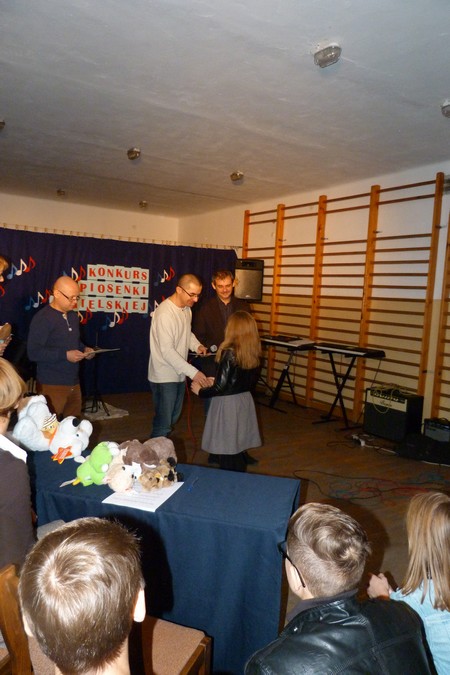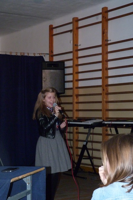 Konkurs na poziomie szkoły podstawowej cieszył się ogromnym zainteresowaniem.. Publiczność obejrzała w sumie aż 17 wykonań, w tym solistów, duety i zespoły wokalno-taneczne. Ponieważ wszyscy oceniani byli w jednej kategorii konkurencja była bardzo duża. Bardzo miło nam zakomunikować, że uczennica klasy IV, Sandra Janas zajęła III miejsce. Sandra wykonała piosenkę z repertuaru Taylor Swift „Shake it off” – jest to utwór bardzo dynamiczny doskonale oddający charyzmę tej młodej wokalistki. Nagroda oraz dyplom za osiągnięte miejsce będą dla niej nie tylko doskonałą pamiątką ale też pokazują jak poznawanie języka angielskiego poprzez śpiew pomaga osiągać sukces i rozwija zainteresowania i talenty uczniów. Gratulujemy !