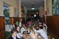 Ostatni dzień w szkole przed Świętami Bożego Narodzenia był inny niż wszystkie. Po obejrzeniu Jasełek, jak co roku uczniowie klas 0-VI przygotowali stoły na swoich korytarzach, gdzie wspólnie z wychowawcami podzielili się opłatkiem oraz częstowali tym co na ten dzień przynieśli z domów. Wspólnie słuchali i śpiewali kolędy. Wszyscy rozeszli się do domów w miłych nastrojach.