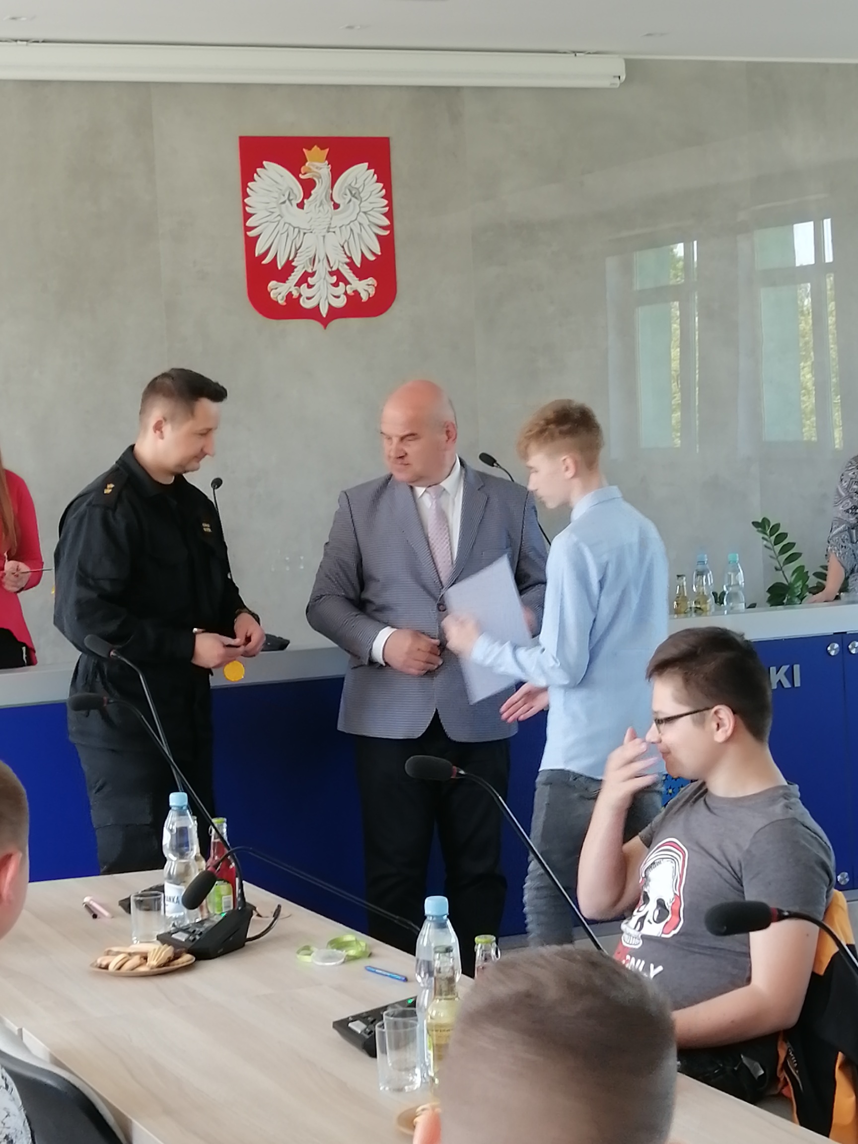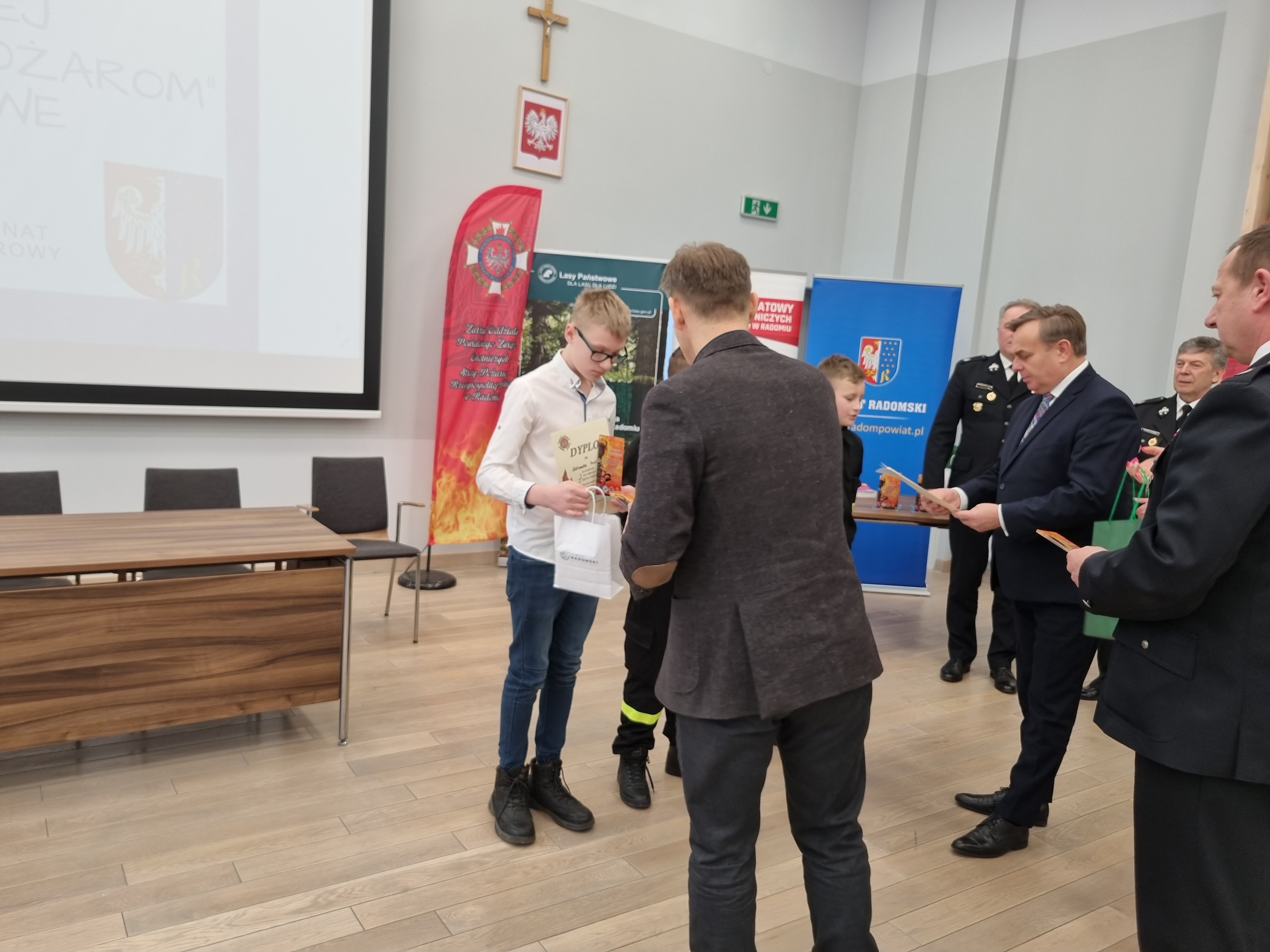 W dniu 17 maja 2022 r. w ramach Powiatowego Programu Zapobiegania Przestępczości oraz Ochrony Bezpieczeństwa Obywateli i Porządku Publicznego na lata 2022-2024 "Bezpieczny Powiat Radomski", a także w związku z prewencją społeczną oraz w trosce o bezpieczeństwo dzieci, młodzieży i seniorów z terenu powiatu radomskiego odbył się Powiatowy Konkurs Wiedzy Pożarniczy pn. "Jedną iskrą wzniecisz pożar". Naszą szkołę reprezentowali uczniowie klasy ósmej Hubert Sałbut i Wojciech Patyna, którzy napisali test. Wyniki konkursu zostaną podane w późniejszym terminie. Dziękujemy uczniom i życzymy sukcesów.