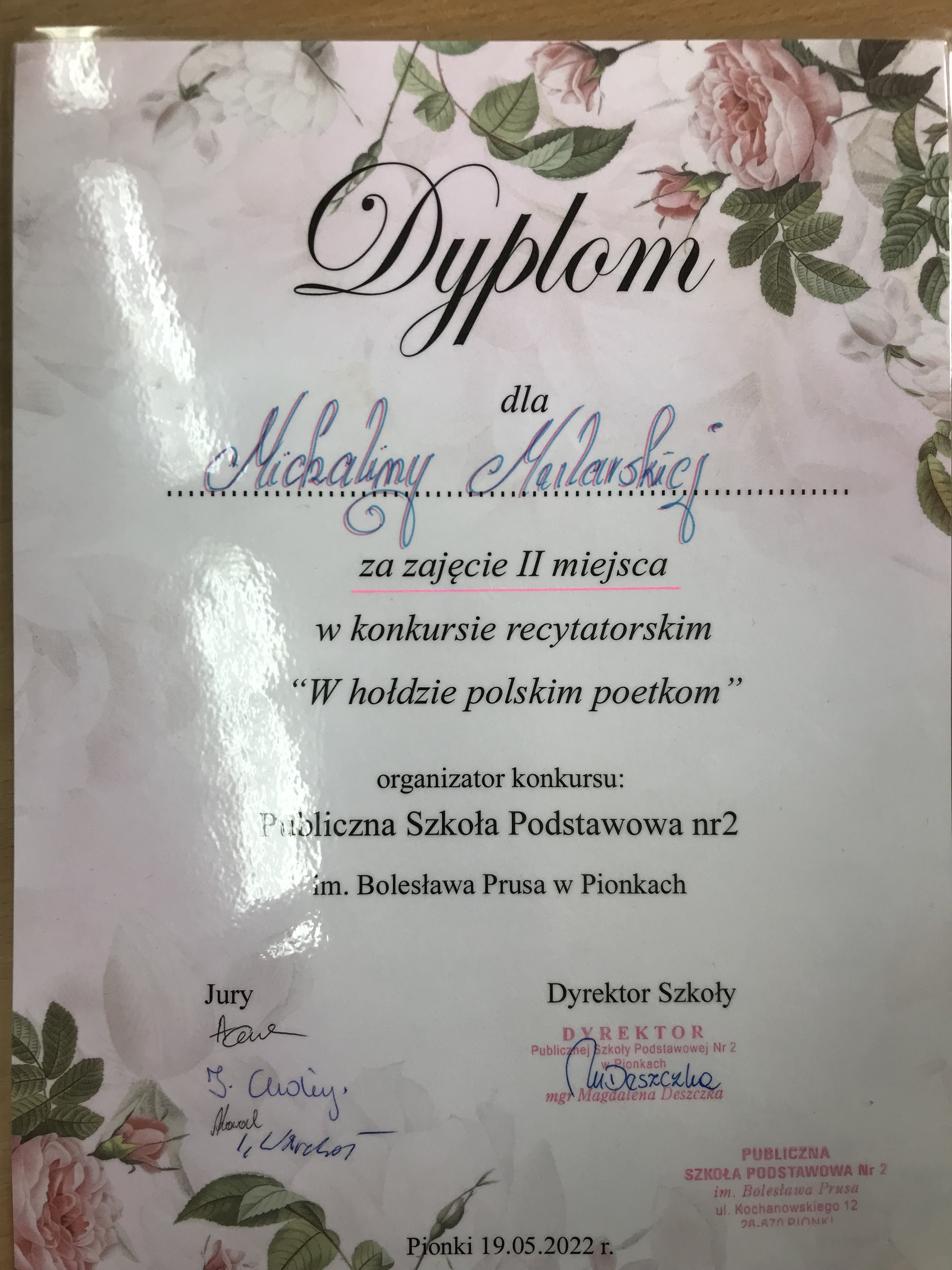W zeszłym tygodniu Michalinka Mularska reprezentowała naszą szkołę w dwóch konkursach recytatorskich.