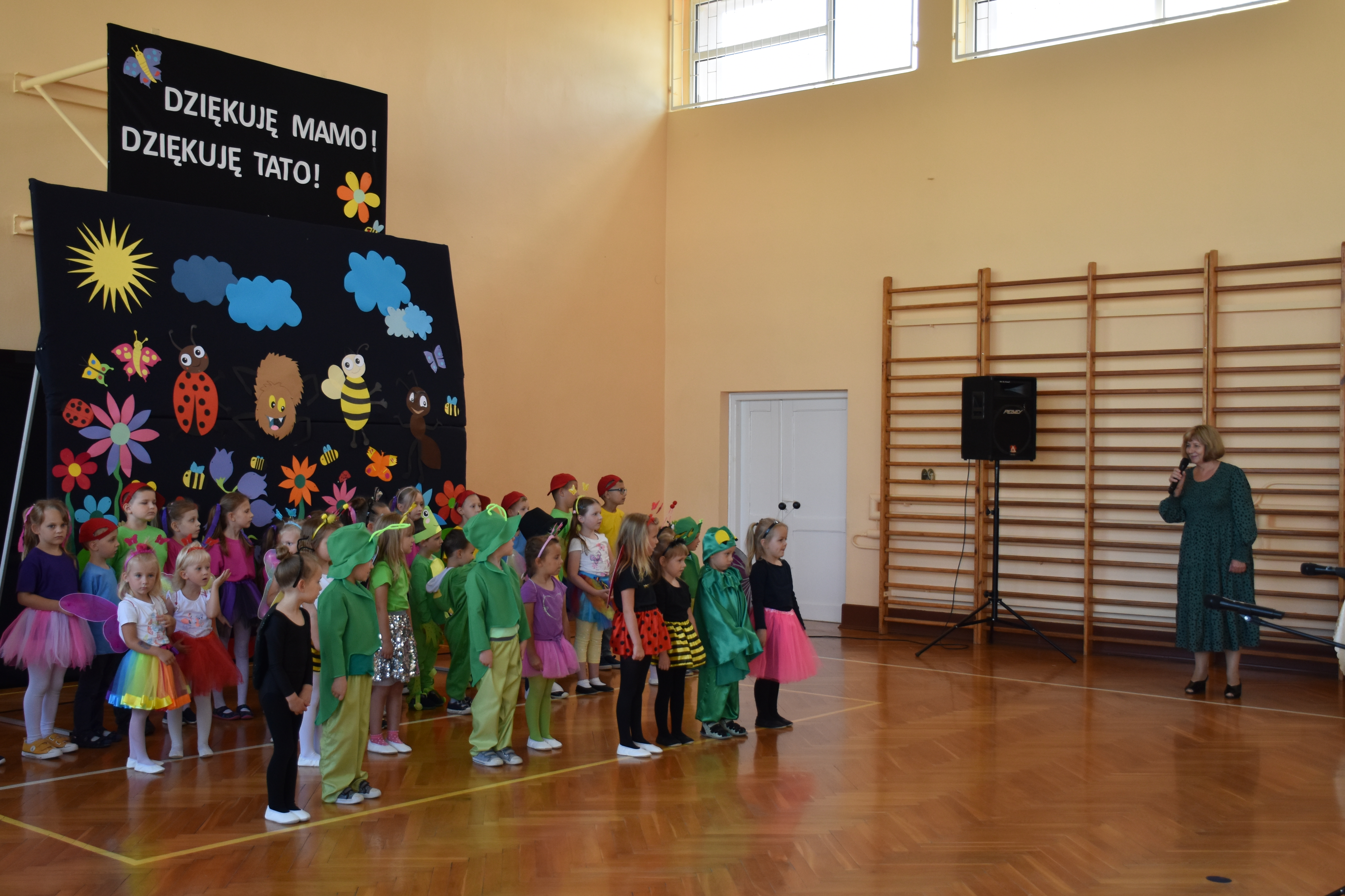 W tym szczególnym dniu zaszczycili nas swoją obecnością: Wójt Gminy Pionki - p. Mirosław Ziółek, Sekretarz Gminy Pionki - p. Katarzyna Konopska, Skarbnik Gminy Pionki - p. Sylwia Jaskulska i Kierownik Gminnego Zarządu Oświaty i Sportu - p. Alicja Olszewska. Pani Dyrektor serdecznie powitała zaproszonych gości, po czym złożyła najserdeczniejsze życzenia rodzicom.