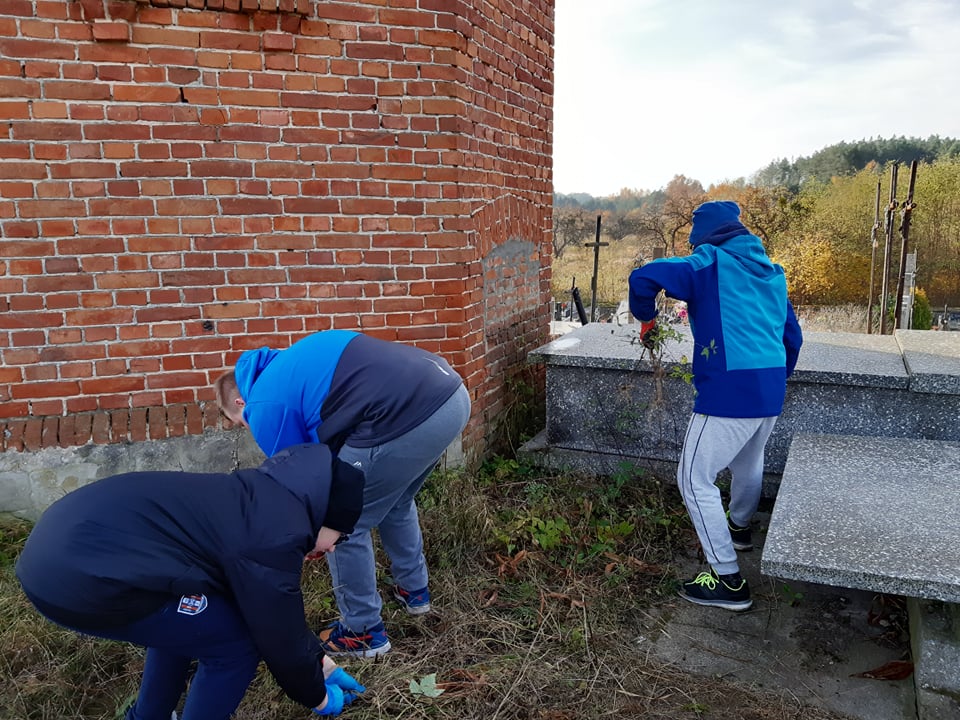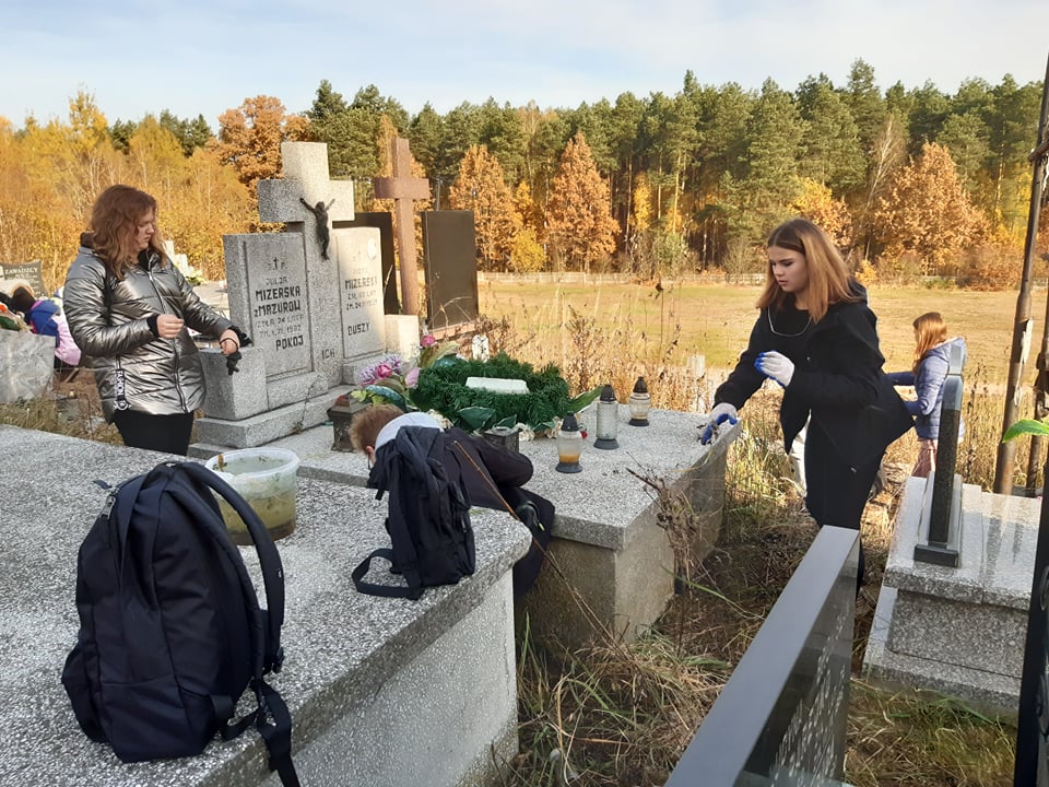 Dnia 26.10 we wtorek uczniowie naszej szkoły należący do Szkolnego Koła Wolontariatu i Caritasu wraz z opiekunami panią Beatą Bartkiewicz, Marią Czyżewską i Iwoną Sutkowską, jak co roku, wybrali się na cmentarz parafialny w Suchej, by posprzątać groby księży pracujących w parafii oraz groby żołnierzy AK. Uczniowie wyczyścili rabatki, posprzątali teren wokół mogił, wynieśli stare zniszczone wieńce i świece. Pracy było bardzo dużo, ale młodzież świetnie sobie poradziła z zadaniem. Na koniec zapalono znicze.