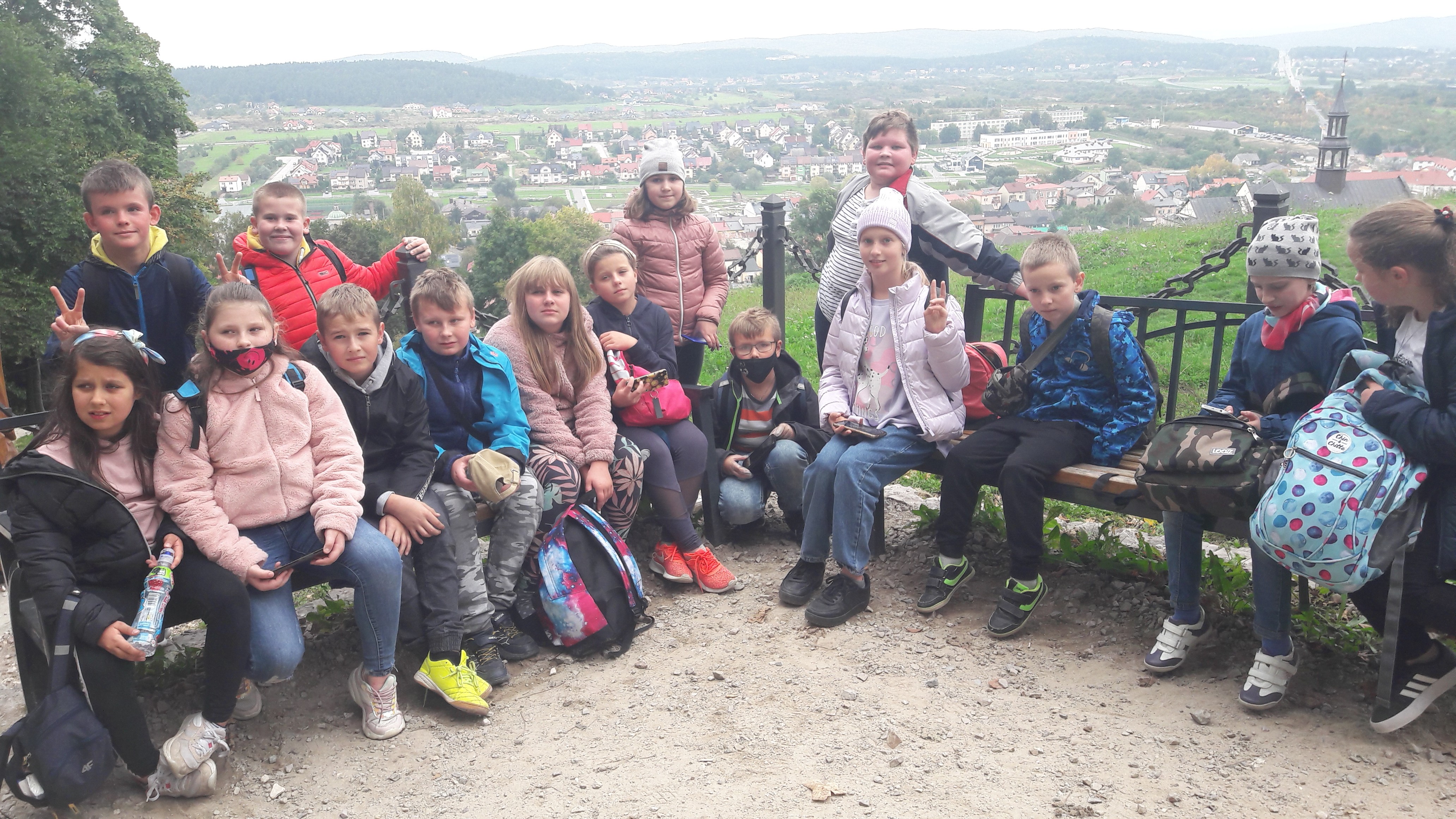 W dniu 29.09.2021 r. klasa IV wraz z wychowawcą wybrała się na wycieczkę szkolną do Centrum Nauki Leonardo da Vinci w Podzamczu koło Chęcin. Celem wycieczki była nauka poprzez doświadczenie i zabawę z wykorzystaniem interaktywnych eksponatów. Uczniowie obejrzeli wystawę "Człowiek - niezwykła maszyna", podejmująca zagadnienia związane z budową i funkcjami życiowymi człowieka, oraz "Człowiek - trybik w machinie przyrody", dotycząca zagadnień ekologiczno -przyrodniczych. Na stanowiskach multimedialnych i mechatronicznych można było sprawdzić min. pojemność płuc, jak dobrą mamy pamięć, zmierzyć przyspieszenie na bieżni, ile wody jest w naszym organizmie. Dzieci mogły wszystkiego dotknąć, doświadczyć , sprawdzić. Po dwóch godzinach zwiedzania udaliśmy się do Zamku Królewskiego w Chęcinach. Tam poznaliśmy historię Zamku, a następnie odwiedziliśmy dwa punkty widokowe na basztach, dziedziniec, skarbiec, lochy i studnię. Na koniec zrobiliśmy pamiątkowe zdjęcie. Bardzo zadowoleni z wyjazdu, chociaż nieco zmęczeni i oszołomieni natłokiem wrażeń wróciliśmy do szkoły.
