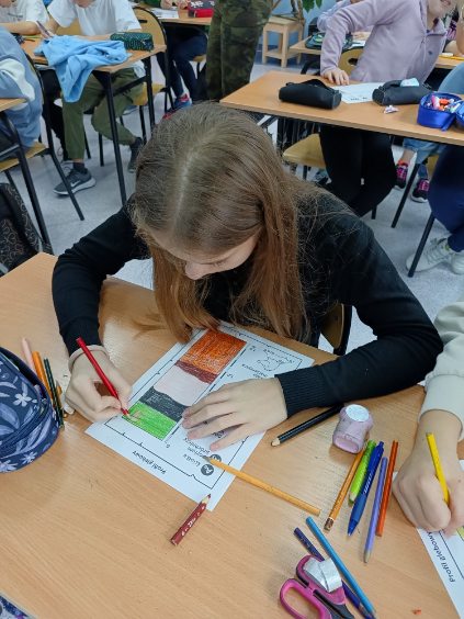 Starsi uczniowie klasy 4 na lekcji profilaktycznej przeprowadzonej przez psychologa szkolnego, rozmawiali o tym jak ważne jest dobre samopoczucie oraz o tym jak spędzać czas wolny. Uczniowie podczas zajęć kolorowali mandale oraz rozkodowywali hasło mówiące, że zdrowie psychiczne jest ważne. Dla wszystkich uczniów, nauczycieli oraz rodziców/opiekunów odwiedzających szkołę przygotowano gazetkę mówiącą jak dbać o zdrowie psychiczne, którą można obejrzeć przy wejściu do szkoły.