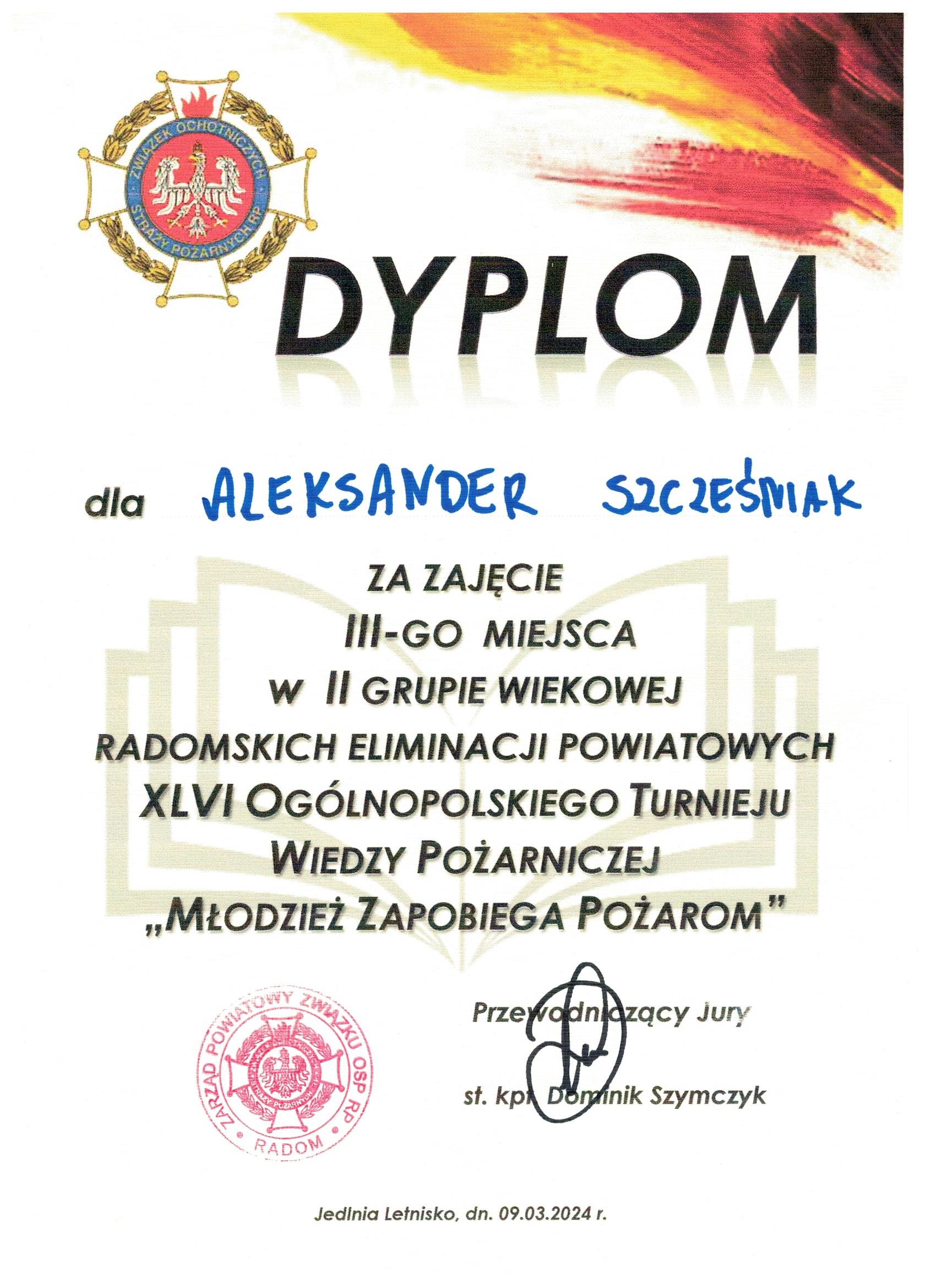 - Aleksander Szcześniak kl. VII,