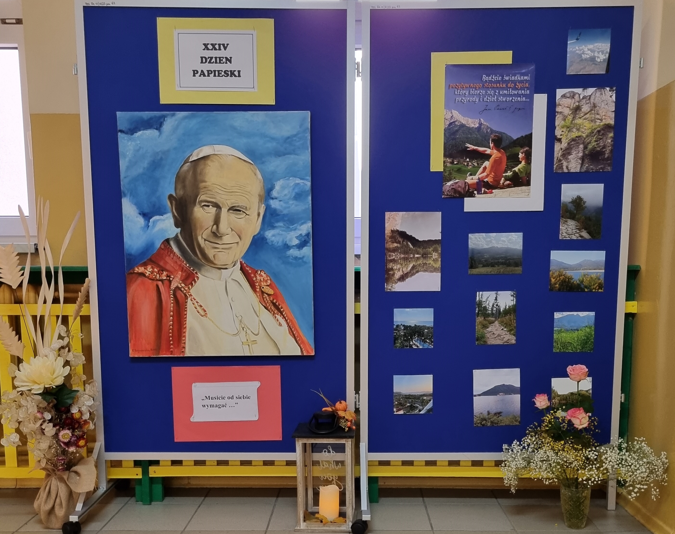 W naszej szkole uczczono Wielkiego Polaka - św. Jana Pawła II ekspozycja z pięknem przyrody, uchwyconym w zdjęciach wykonanych przez uczniów kl. 6.