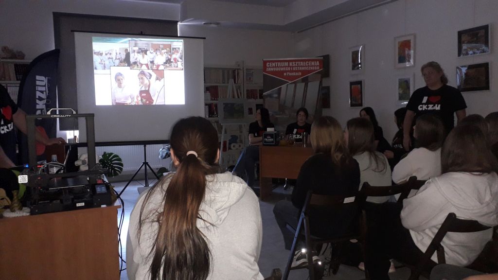 W dniu 23 maja klasa VIII z naszej szkoły wzięła udział w Dniu Otwartym w CKZiU w Pionkach. Uczniowie uczestniczyli w pokazach na sali gimnastycznej, które obejmowały ofertę edukacyjną w nowym roku szkolonym. Wszystkich zaproszonych uczniów szkół podstawowych powitała p. Dyrektor. W następnej kolejności, podzieleni na grupy uczniowie zwiedzali szkołę i zapoznawali się z jej bazą dydaktyczno-sportową. Zwieńczeniem Dnia Otwartego był smaczny poczęstunek, wręczenie drobnych pamiątek oraz wspólne klasowe zdjęcia w specjalnie przygotowanym miejscu. Opiekę nad ósmoklasistami sprawował wychowawca klasy p. Dariusz Czyżewski.
