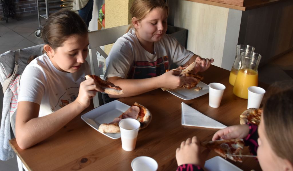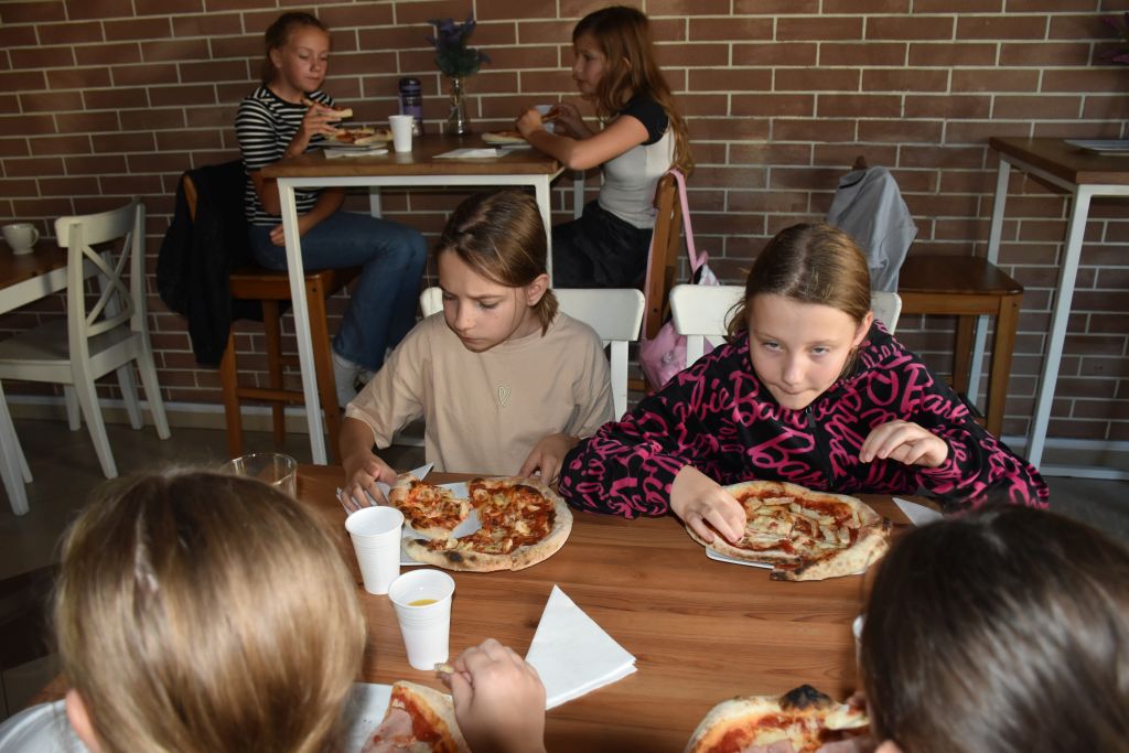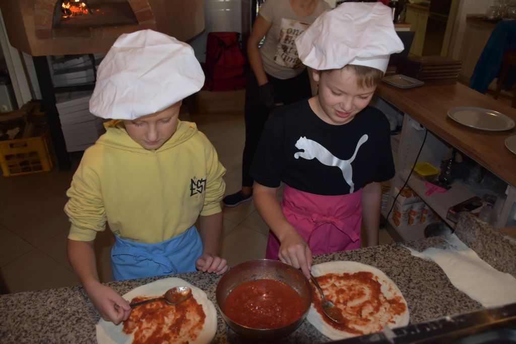 W dniu 25 września 2024r. klasa IV wraz z wychowawczynią p. Iwoną Sutkowska oraz p. Dariuszem Czyżewskim uczestniczyli w warsztatach kulinarnych "Moja Pizza" w pizzerni Rozmaryn w Zwoleniu. Każdy uczeń samodzielnie przygotowywał ciasto na pizzę oraz wybierał ulubione dodatki. Upieczone pizze wszystkie dzieci zjadły z wielką ochotą, popijając smacznym sokiem owocowym. Po odbytych warsztatach klasa IV udała się pod pomnik Jana Kochanowskiego oraz jego córeczki Urszulki. Ostatnim etapem wyjazdu była wizyta w lodziarni, na degustacji naturalnych lodów.