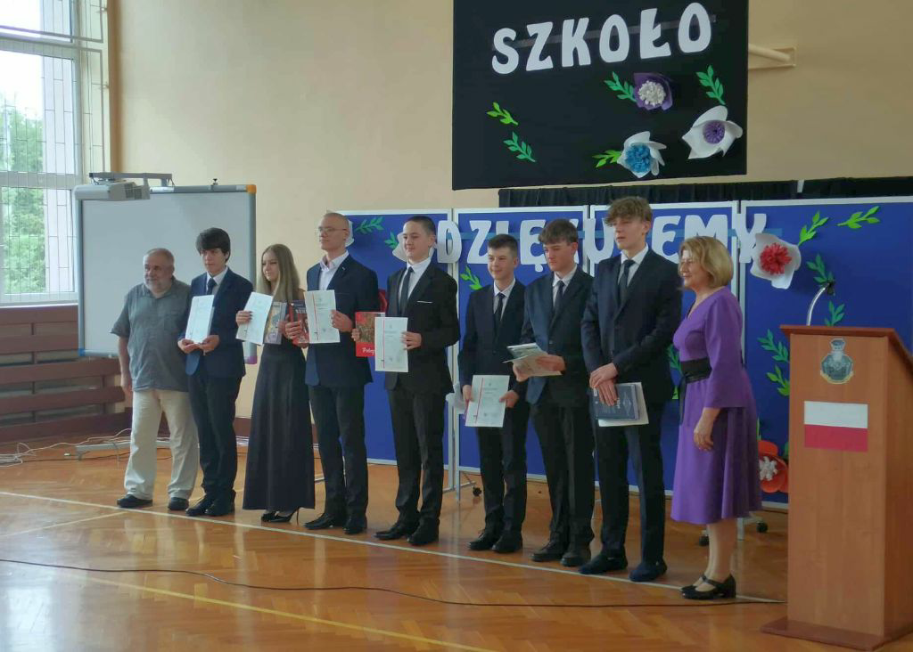 27 czerwca o godz. 830 w naszej szkole odbyło się zakończenie roku szkolnego 2024/2025. Uroczystość rozpoczęła się od przekazania sztandaru młodszym kolegom i odśpiewaniu hymnu państwowego. Następnie Pani Dyrektor Ewa Pałucka powitała wszystkich zgromadzonych i podsumowała miniony rok. Przedstawiła krótko osiągnięcia uczniów i podziękowała opiekunom, wychowawcom i rodzicom. Najlepsi uczniowie otrzymali świadectwa z wyróżnieniem i nagrody.
