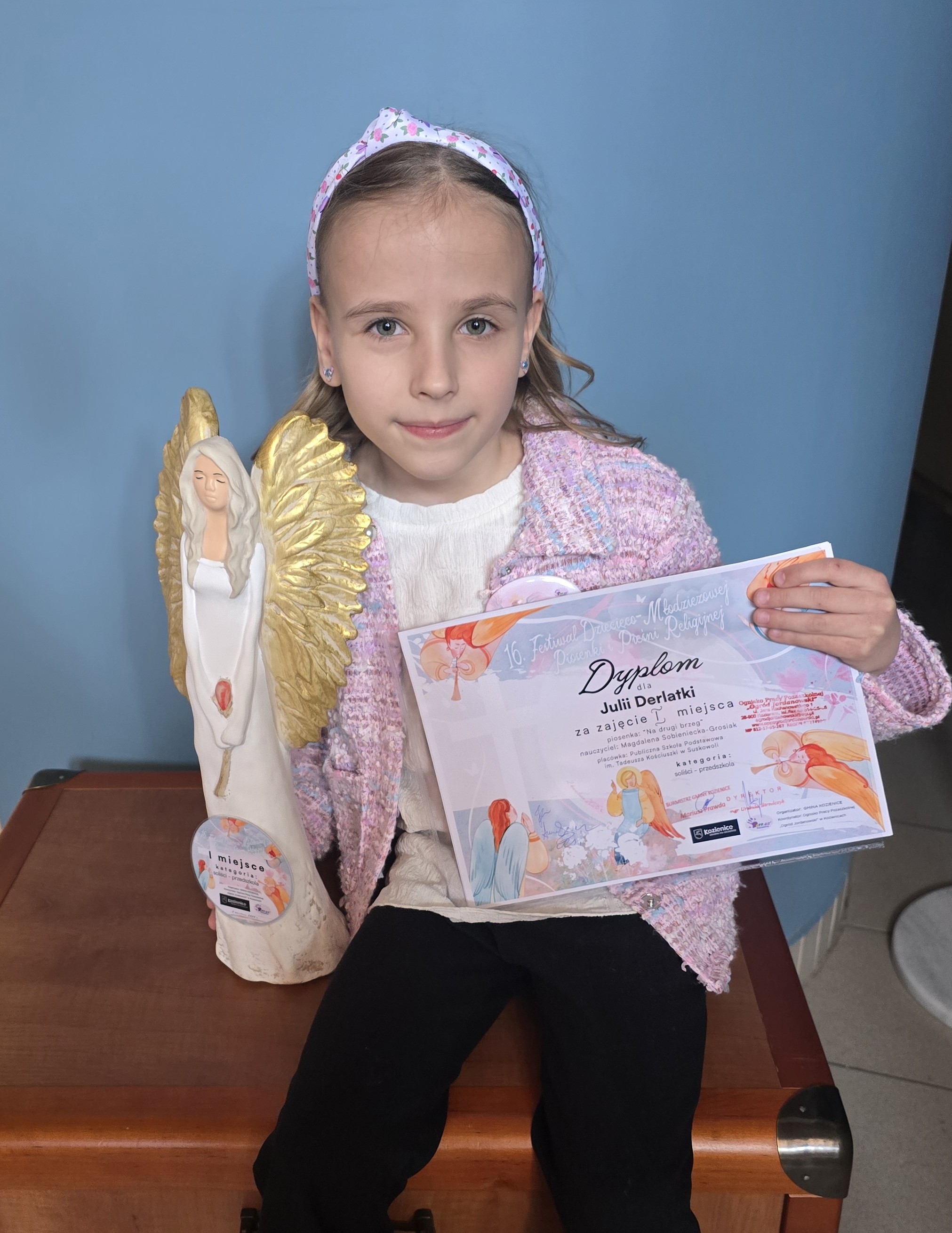 W środę 21 maja trzy uczennice Julia Derlatka z oddziału przedszkolnego, Alicja Dziedzic z IV klasy oraz Klara Mularska z VII klasy, reprezentowały naszą szkołę podczas VII Festiwalu Piosenki Turystycznej organizowanego przez OPP OGRÓD JORDANOWSKI w Kozienicach. Świetny występ uczennic został doceniony przez jury i nagrodzony wysokimi miejscami. Julia Derlatka w kategorii Soliści przedszkola zdobyła I miejsce, Alicja Dziedzic w kategorii Soliści wokalni szkoły podstawowe klasy IV-VI wyśpiewała II miejsce, a Klara Mularska w kategorii Soliści wokalni klasy VII zajęła I miejsce. Serdecznie gratulujemy i życzymy kolejnych sukcesów!